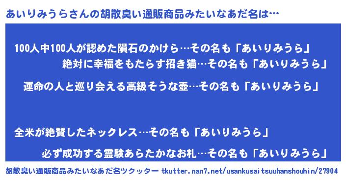 | 意味不明あだ名 | 『あいりみうらフォーエバー』 |