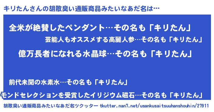 | 意味不明あだ名 | 『ペロリンキリたん』『自称キリたん』 |