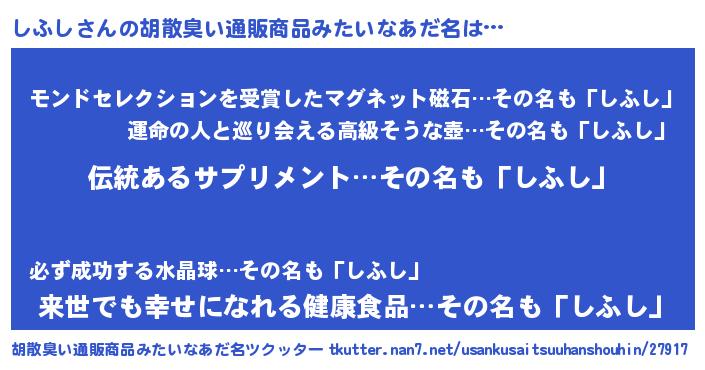 | ヘコむあだ名 | 『しふ太郎』『しふし(苦笑)』『牛乳』 |