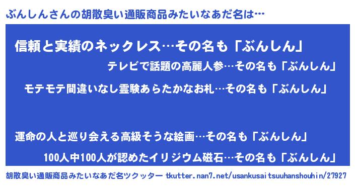 | 意味不明あだ名 | 『ペロリンぶんしん』『自称ぶんしん』 |