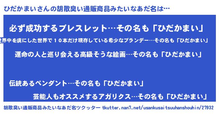 | 肩書あだ名 | 『ひだかまい総理大臣』『ひだかまい中将』 |