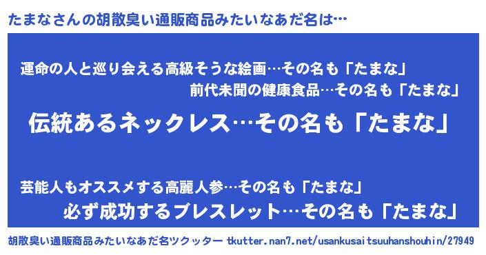 | 男性向けラノベタイトル風あだ名 | 『はたらくたまなさま!』 |