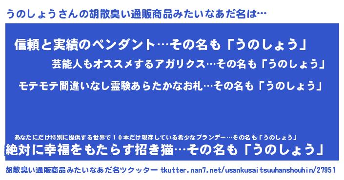| 意味不明あだ名 | 『ペロリンうのしょう』『自称うのしょう』 |