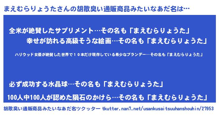 | 伝説のあだ名 | 『孤高の遊び人まえむらりょうた』 |