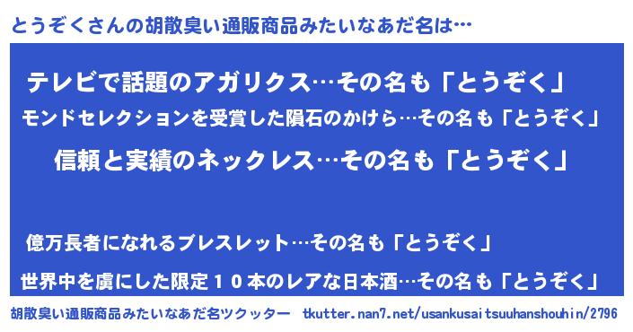 | 恥ずかしいあだ名 | 『トウリンリン』『トウゾクデラックス』 |