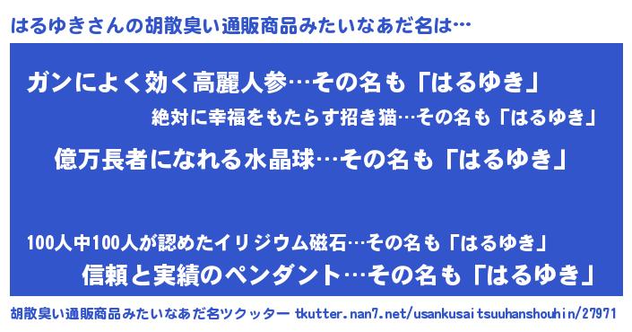 | 意味不明あだ名 | 『ペロリンはるゆき』『自称はるゆき』 |