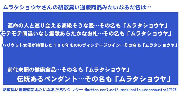 | 欧米人風あだ名 | 『ダレノガレムラタショウヤ』 |