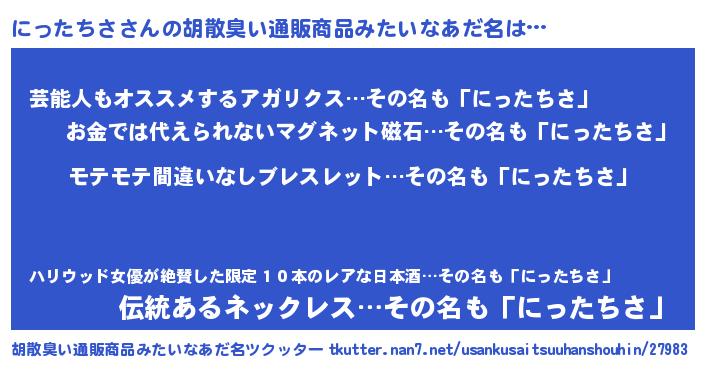| 意味不明あだ名 | 『ペロリンにったちさ』『自称にったちさ』 |