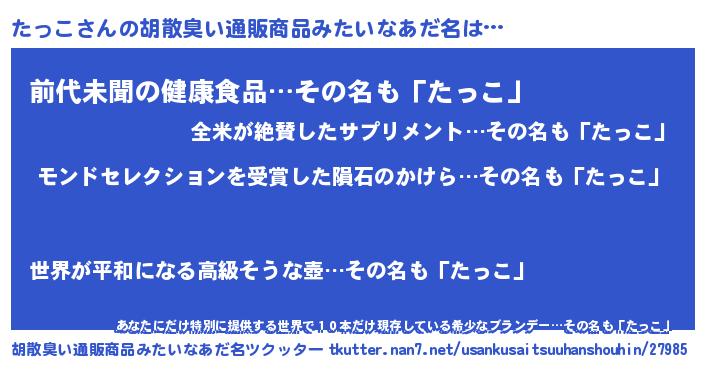 | ヘコむあだ名 | 『たっこ(遠い目)』『たっぷりん』 |