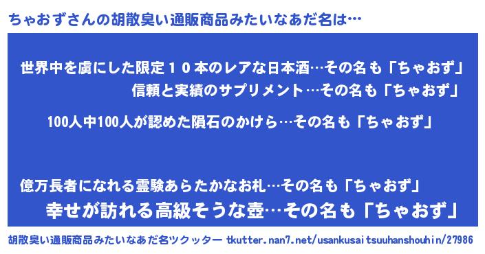 | 欧米人風あだ名 | 『アンジェラ・ちゃおず』 |