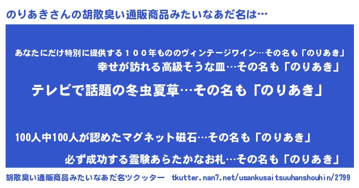 | 女子向けラノベタイトル風あだ名 | 『闇ののりあき』『のりあきの雑貨屋さん』 |