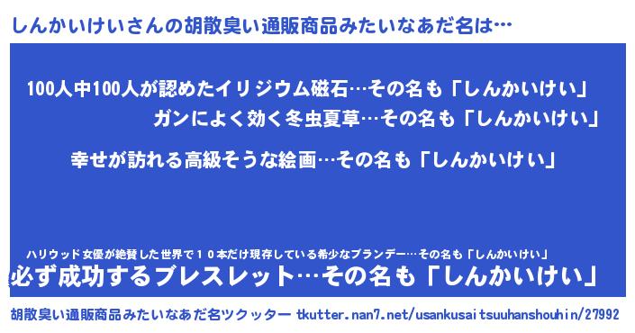 | 意味不明あだ名 | 『しんかいけいフォーエバー』 |