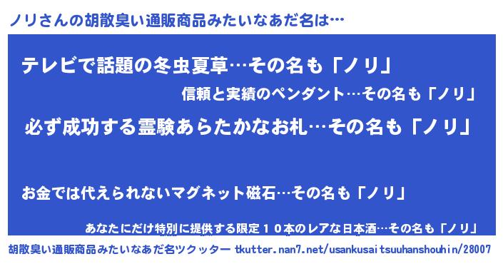 | 意味不明あだ名 | 『ペロリンノリ』『自称ノリ』 |