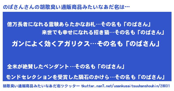 | ヘコむあだ名 | 『のばにゅー』『のばさん(震え声)』 |