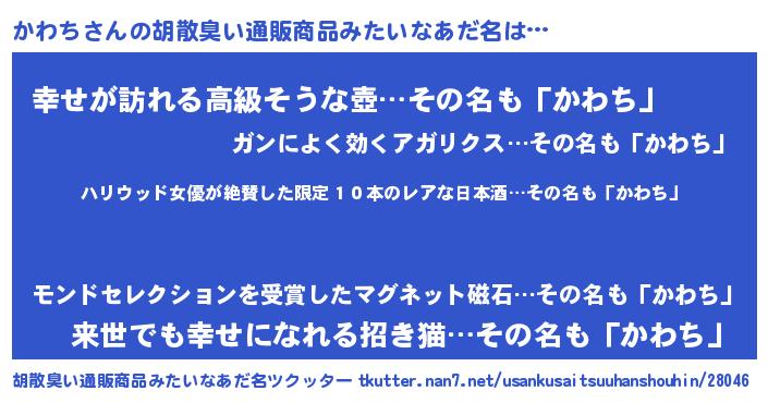 | 意味不明あだ名 | 『住所不定無職かわち(62歳)』『自称かわち』 |