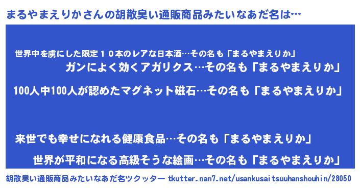 | 意味不明あだ名 | 『眠気覚ましガムまるやまえりか味』 |