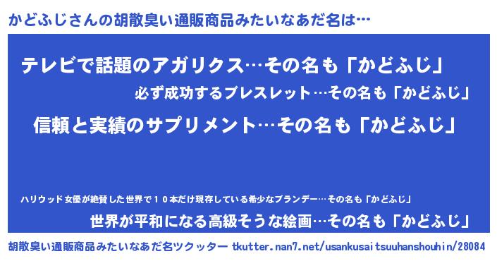 | 意味不明あだ名 | 『とにかく怪しいかどふじ』 |