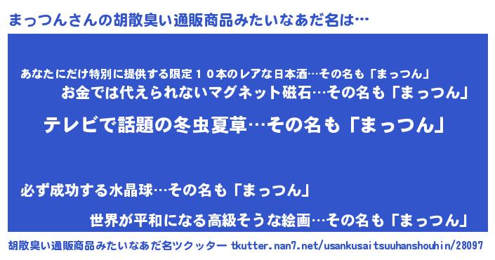 | 男性向けラノベタイトル風あだ名 | 『転生したらまっつんだった件』 |