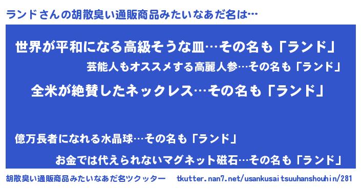 | 意味不明あだ名 | 『とにかく怪しいランド』『自称ランド』 |