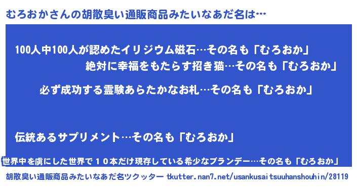 | ヘコむあだ名 | 『むろもー』『むろおか(笑)』 |