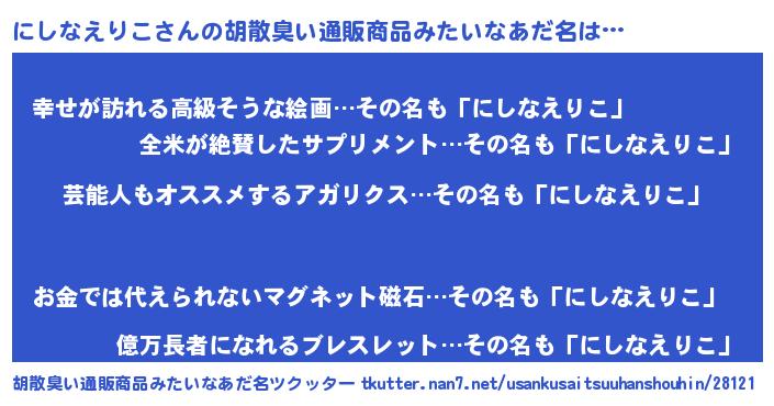| 意味不明あだ名 | 『自称にしなえりこ』 |
