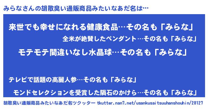| 意味不明あだ名 | 『ペロリンみらな』『永久保存みらな』 |
