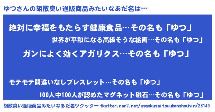 | ヒーロー風カッコイイあだ名 | 『超時空戦士ユツ』『ネオユツ』 |