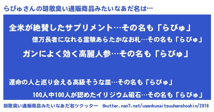| 伝説のあだ名 | 『孤高の魔法使いらびゅ』 |