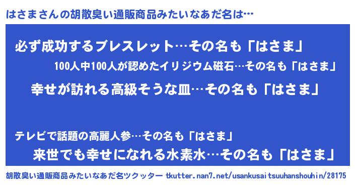 | ヒーロー風カッコイイあだ名 | 『ウルトラはさまマン』『スーパーハサマ』 |