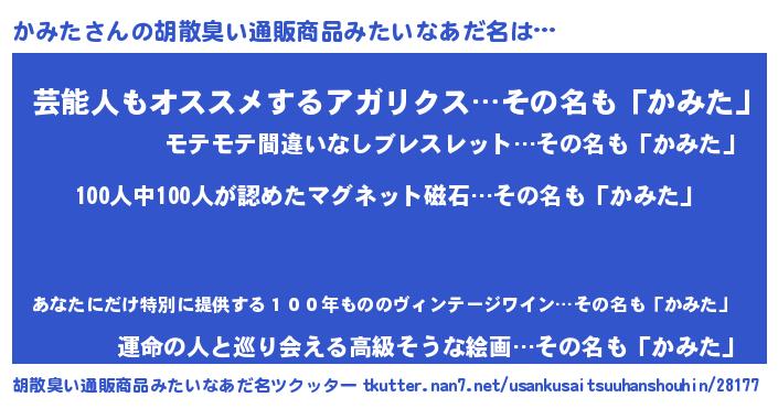 | 女子向けラノベタイトル風あだ名 | 『かみた夫妻のなれそめ』『闇のかみた』 |