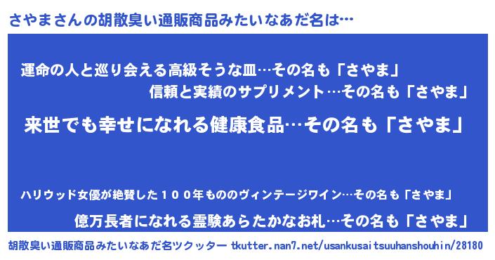 | ヘコむあだ名 | 『さやま(笑)』『なまこ酢』 |