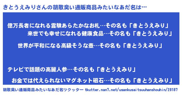 | 欧米人風あだ名 | 『きとうえみりクリステル』 |