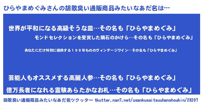 | ヘコむあだ名 | 『酢こんぶ』『ひらふぇ~』 |
