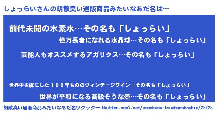 | 意味不明あだ名 | 『自称しょっらい』『永久保存しょっらい』 |