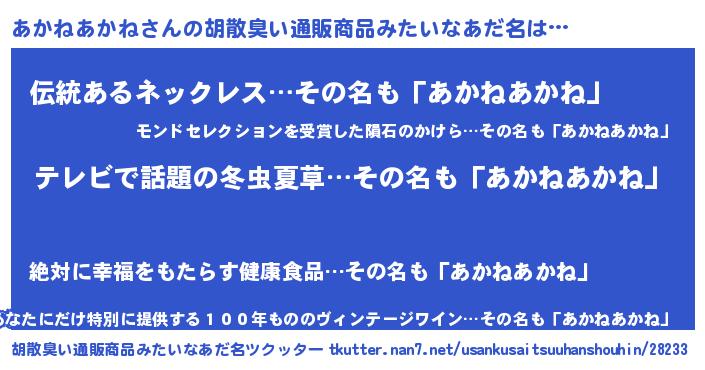 | 意味不明あだ名 | 『自称あかねあかね』 |