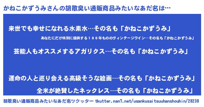 | ヘコむあだ名 | 『かねこかずうみ(笑)』『かねぷりん』 |