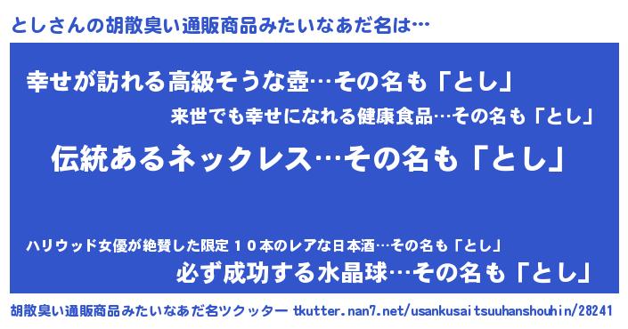 | 恥ずかしいあだ名 | 『トシリンリン』『としっちょ』 |