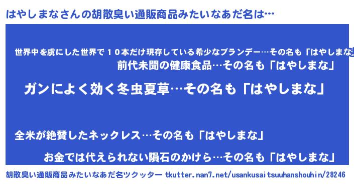 | ヘコむあだ名 | 『はやしまな(苦笑)』『はやっ子』 |