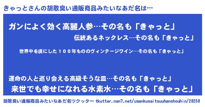 きゃっとさんの胡散臭い通販商品みたいなあだ名をツクッター!