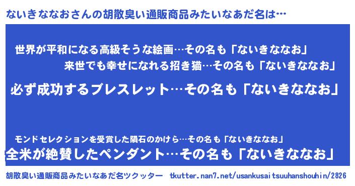 | 男性向けラノベタイトル風あだ名 | 『ないきななおの憂鬱』 |