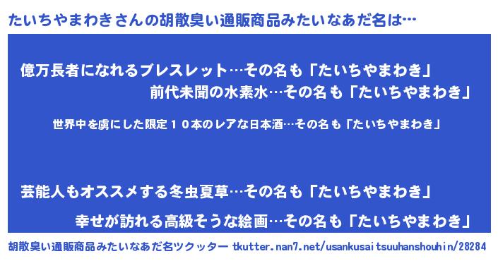 | 意味不明あだ名 | 『住所不定無職たいちやまわき(41歳)』 |