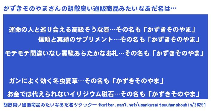| 男性向けラノベタイトル風あだ名 | 『転生したらかずきそのやまだった件』 |
