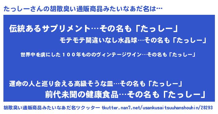 | 意味不明あだ名 | 『住所不定無職たっしー(6歳)』 |