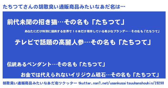 | 意味不明あだ名 | 『自称たちつて』『永久保存たちつて』 |