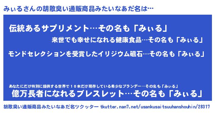 | ヒーロー風カッコイイあだ名 | 『慈愛の使者みぃる』『銀牙騎士ミィ』 |