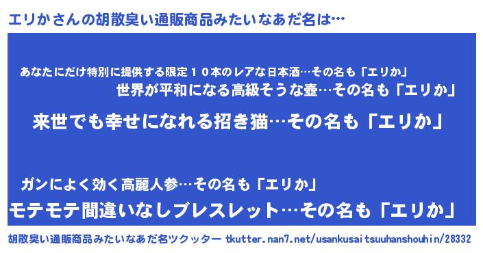 | 恥ずかしいあだ名 | 『エリちん』『プリティーエリか』 |