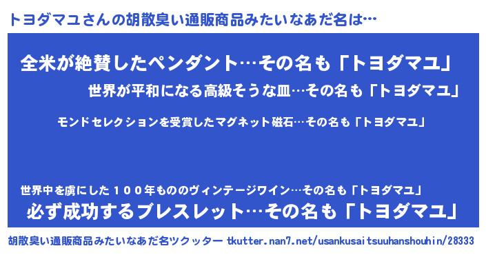 | ピコ太郎風あだ名 | 『トト太郎』『トヨ史郎』『トコ三郎』 |