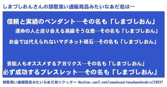 | 欧米人風あだ名 | 『トリンドルしまづしおん』 |