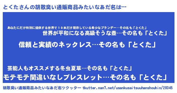 | 意味不明あだ名 | 『とにかく怪しいとくた』『自称とくた』 |