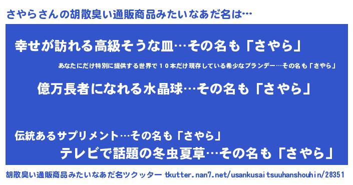 | 意味不明あだ名 | 『ペロリンさやら』『さやらフォーエバー』 |